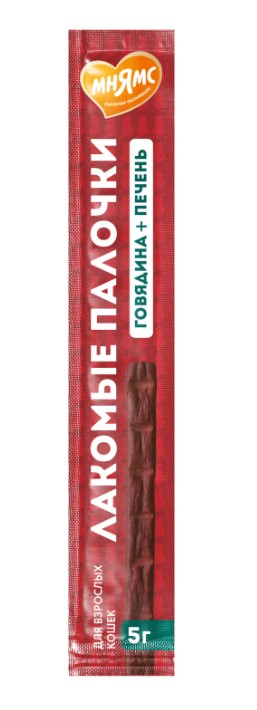 Лакомые палочкис говядиной и печенью - вкусный путь к сердцу вашей кошки. Лакомые палочки можно давать из рук, ломать и использовать для дрессировки, наполнять ими интерактивные игрушки или подмешивать в корм для улучшения вкусовой привлекательности. В составе палочек более 90% мяса. А также в составе нет злаков, глютена и ароматизаторов. Докажите свою любовь вместе с вкусными и полезными лакомыми палочками "Мнямс".