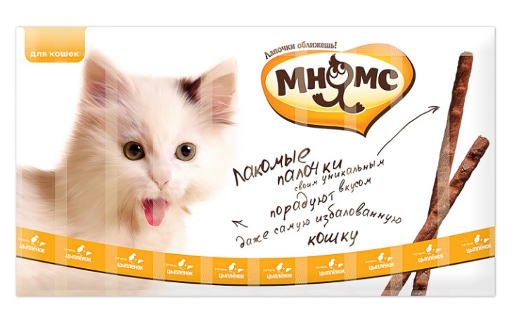 Мнямс лакомые палочки для кошек с цыпленком и печенью станут любимым угощением для вашего любимца.