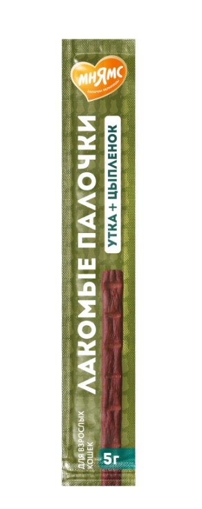 Мнямс лакомые палочки 13,5 см для кошек с цыпленком и уткой.