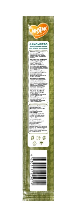 Мнямс лакомые палочки для кошек с цыпленком и уткой станут желанным угощением для вашего питомца. Натуральные компоненты корма принесут только пользу, а комплекс витаминов обеспечит хорошее самочувствие и здоровый вид вашей кошке. В состав палочек входит значительная доля мяса цыпленка и утки.