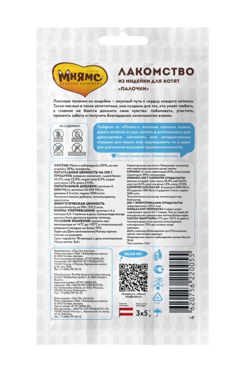 Лакомые палочки из индейки - вкусный путь к сердцу каждого котенка. Такие мясные и такие аппетитные, они созданы для тех, кто умеет любить, а главное - не боится дозакать свои чувства: побаловать, угостить, проявить заботу и получить благодарное лапопажатие взамен.