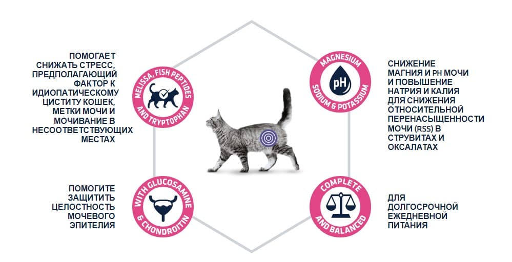 Состав: курица, рис, дегидрированные белки домашней птицы, кукурузный белок, кукурузная клейковина, животный жир(в качестве стабилизатора используется смесь токоферолов натурального происхождения), гидролизованные животные, белкижир, соль, хлорид калия, свекольная стружка, фруктовые олигасахариды, рыбные пептиды(0,1%), Экстракт мелиссы(0,1%), цитрат калия, глюкозамин (400 мг/кг), хондроитин сульфат (100 мг/кг), Вещества, подкисляющие мочу: кукурузный белок, хлорид аммония, метионин.