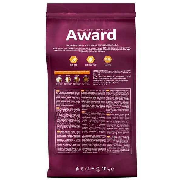Сухой корм AWARD Cat Hairball & Indoor для взрослых кошек для выведения шерсти с уткой и индейкой с добавлением зеленой чечевицы и Юкки Шидигера.