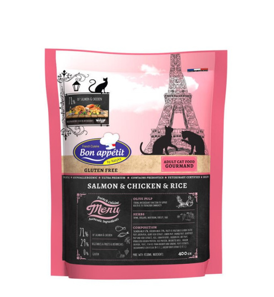Представляем вам французский корм для кошек Bon Appetit! Мы предлагаем удивительный корм для гурманов, приготовленный из высококачественных ингредиентов, таких как лосось, куриное мясо и жир, с высоким содержанием белка и лучшим вкусом для вашей любимой кошки. Этот рецепт специально разработан для активных кошек с высокими энергетическими потребностями, так как помогает поддерживать здоровую шерсть благодаря богатому содержанию жирных кислот омега-3 и 6. Дайте своему пушистому компаньону только самое лучшее питание, которого он заслуживает, с нашим кормом Bon Appetit Cat Adult Gourmand — получите все необходимые витамины, минералы и другие питательные вещества, чтобы он прожил долгую и здоровую жизнь без ущерба для вкуса или текстуры.