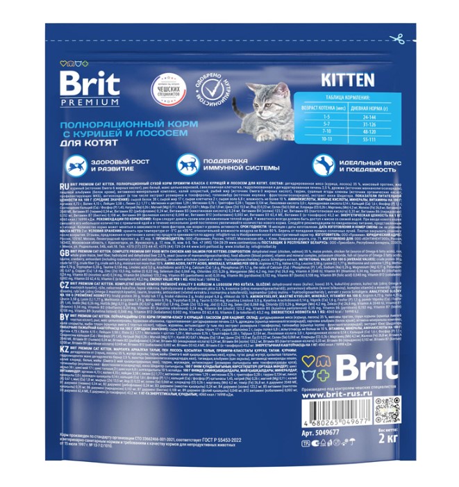 Brit Premium Cat Kitten. Полнорационный сухой корм премиум класса с курицей для котят