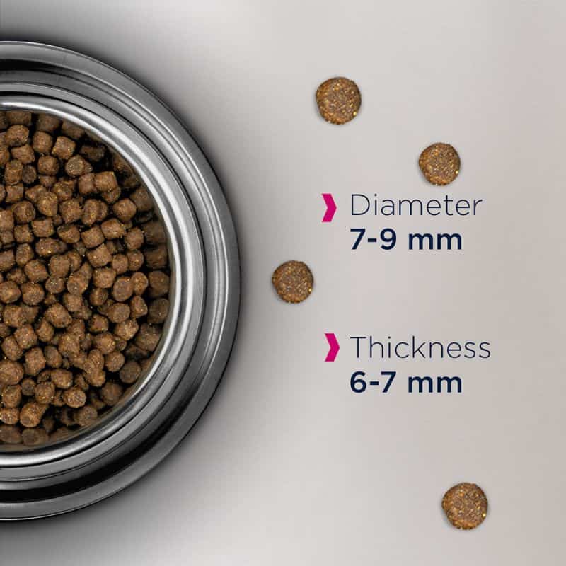 - Специальная форма гранул: помогает в уходе за зубами и способствует удалению зубного налета и зубного камня.