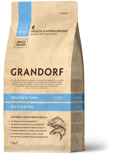 Grandorf Skin & Care (белая рыба, индейка) - корм для кошек от 1 года с проблемной кожей и шерстью или склонных к аллергии.