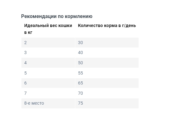Сырой белок 28,5%, сырой жир 20,0%, сырая клетчатка 3,5%, сырая зола 4,5%, кальций 0,4%, фосфор 0,35%, натрий 0,4%, калий 0,65%, магний 0,06%, жирные кислоты омега-6 3,5 % , омега-3 жирные кислоты 0,4%