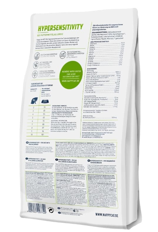 HAPPY CAT VET Diet Hypersensitivity - сухой корм для кошек при пищевой непереносимости. Ветеринарная диета всегда консультируйтесь с ветеринаром, чтобы убедиться, что корм подходит для вашей кошки.