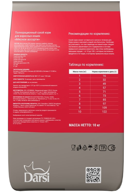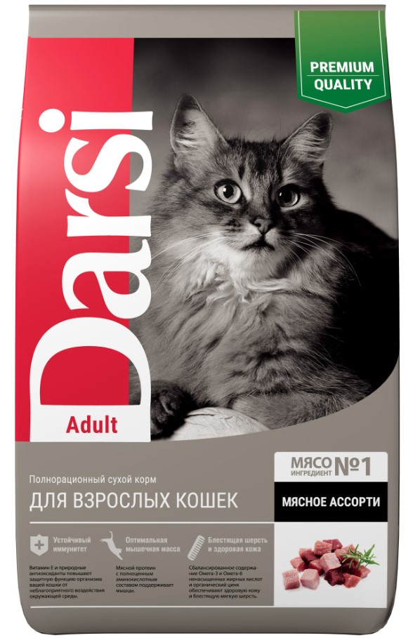 Дарси сухой корм для взрослых кошек, Мясное ассорти