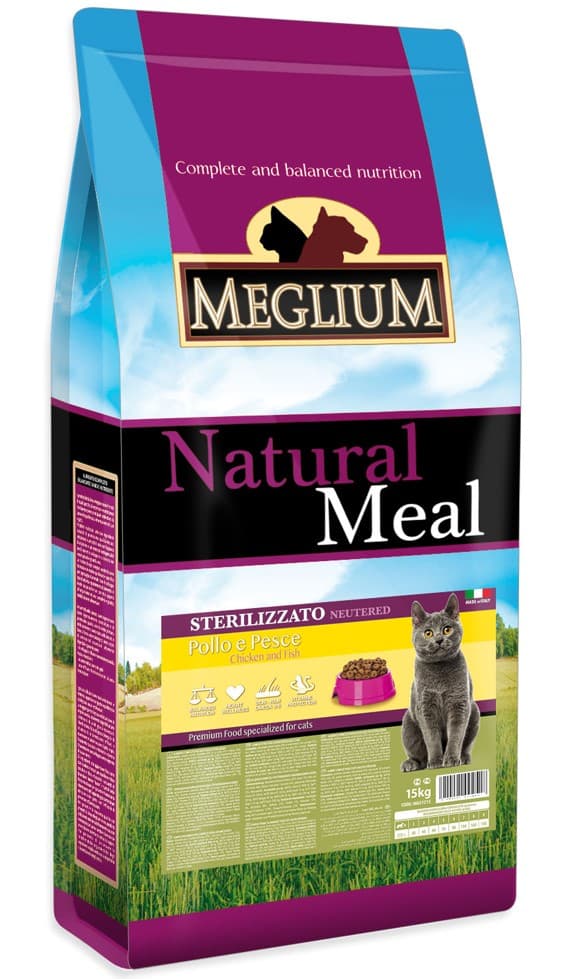 Правильное сочетание между куриным, говяжьим и рыбным мясом для получения соответствующего аминокислотного состава,Омега-3 жирных кислот из рыбы, сбалансированного количества минералов, отличной дозы клетчатки и таурина. Все это делает Meglium Cat Neutered подходящим выбором для стерилизованных кошек.