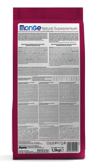 Monge Natural Superpremium Indoor курица — это полноценный и сбалансированный корм для взрослых малоподвижных кошек, живущих дома.