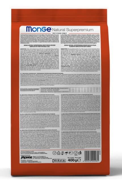 Monge Natural Superpremium Senior, обогащенный курицей, — это полноценный и сбалансированный корм для пожилых кошек. Первым ингредиентом является курица, а рецептура отличается усвояемостью и вкусовыми качествами за счет включения свежего мяса.