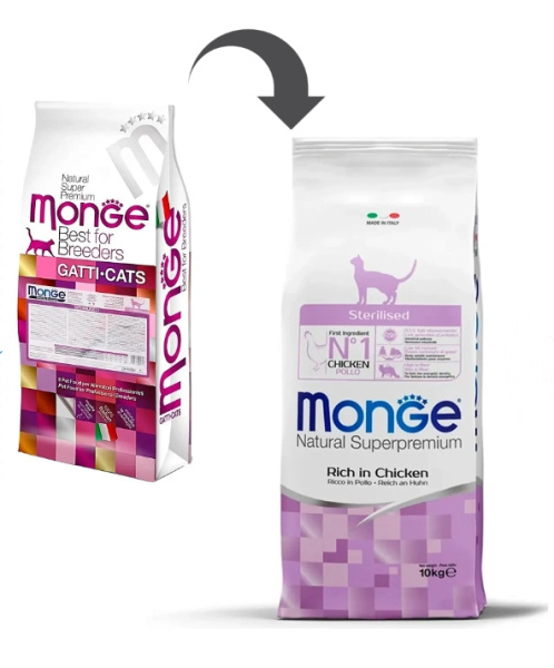 Monge Sterilised Rich in Chicken (курица) - корм из мяса курицы для стерилизованных кошек и кастрированных котов.