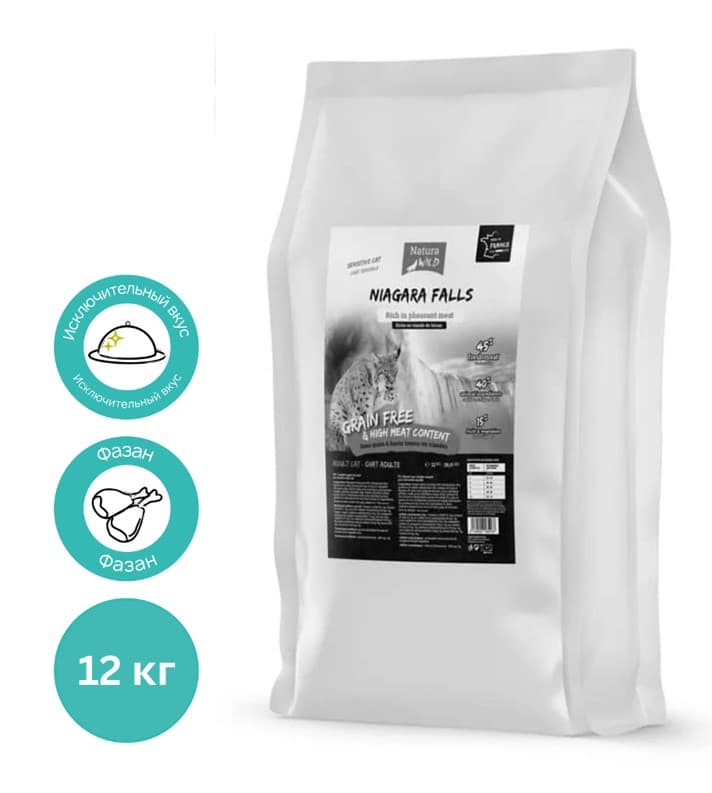 Natura Wild Sensitive CAT Niagara Falls (фазан) - беззерновой сухой корм для взрослых кошек и котов с чувствительным пищеварением.