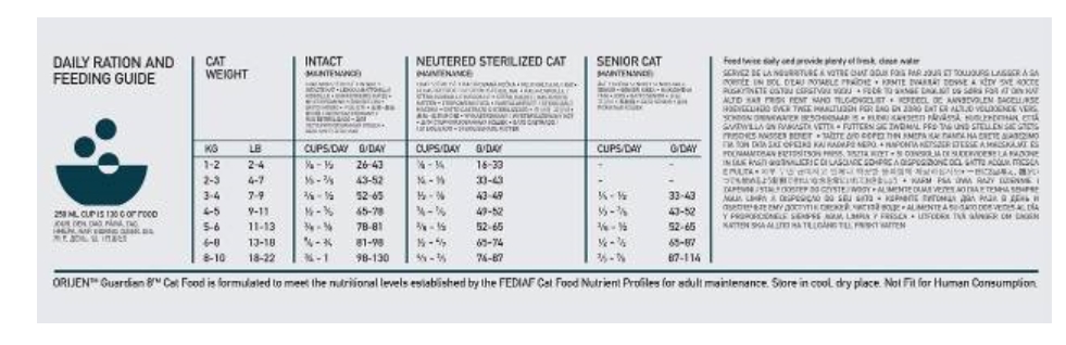 Приведенные ниже нормы кормления (таблица, фото) представляют собой отправную точку, которую можно корректировать по мере необходимости для поддержания оптимального веса и наилучшей физической формы. Следите за весом вашего питомца и корректируйте рацион по мере необходимости. Рекомендовано кормить два раза в день и всегда иметь в наличии свежую чистую воду.