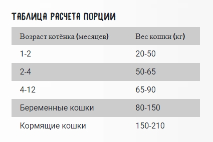 Указанные нормы являются рекомендованными суточными дозами потребления. Храните продукт в прохладном и сухом месте. Обеспечьте постоянное наличие чистой и свежей воды в пределах досягаемости кошки.