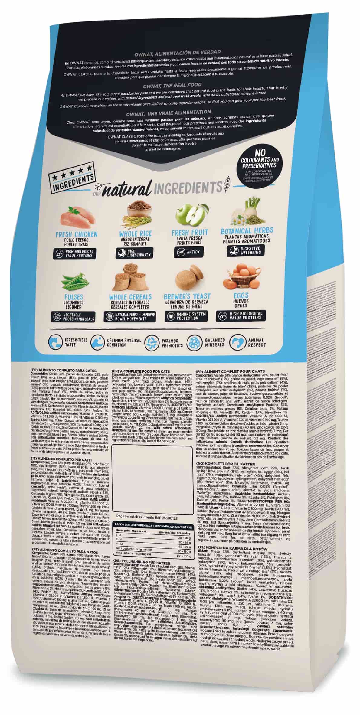 OWNAT Classic Kitten – это сухой сбалансированный корм для котят с курицей. Предназначен для котят в возрасте от 1 до 12 месяцев.