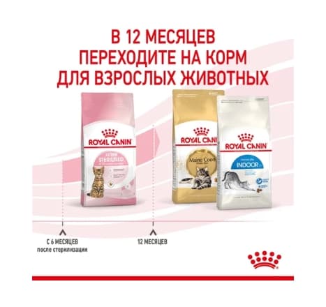 Royal Canin Kitten Sterilised - сухой корм для стерилизованных котят до 12 месяцев. Полнорационный сухой корм подходит стерилизованным котятам с момента операции до 12 месяцев.