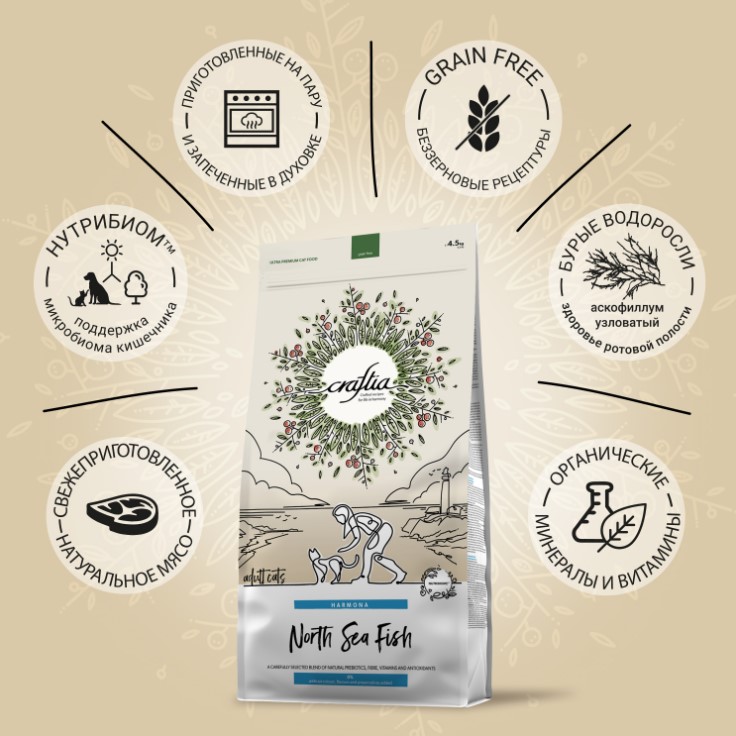 КРАФТИА ХАРМОНА - корм для кошек и котов ультрапремиум класса, созданный с любовью к природе.