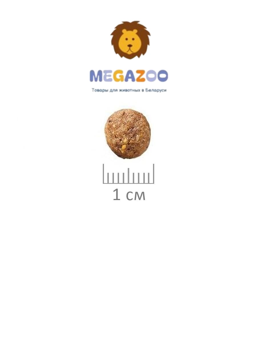 Гарантированный анализ: протеин – 32%, жир – 14%, клетчатка – 3%, зола – 6%, влажность – 10%, кальций – 1,2%, фосфор – 1%.