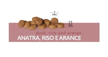 Состав: дегидратированная утка (14,13%*), кукурузная клейковина, рис (13,12%), кукурузная мука, дегидратированная курица, дегидратированная свинина, куриный жир, гидролизованные животные белки, гороховая клетчатка, кукуруза, пивные дрожжи, дегидратированная мякоть апельсина (1,01%), льняное семя (1,01%), яйца, семена подорожника (0,50%), сушеные морские водоросли, глюкозамин, зеленые мидии (0,05%)