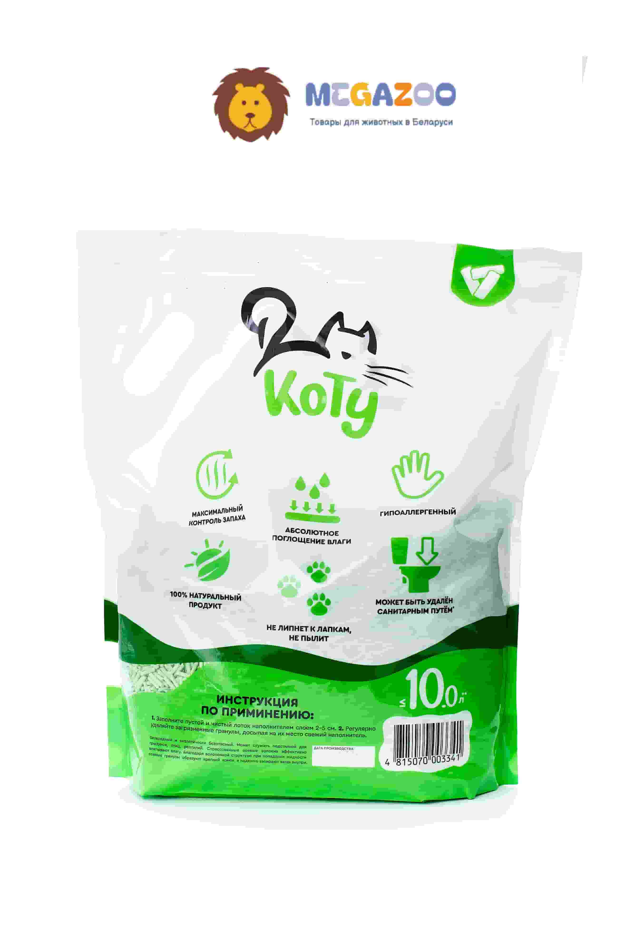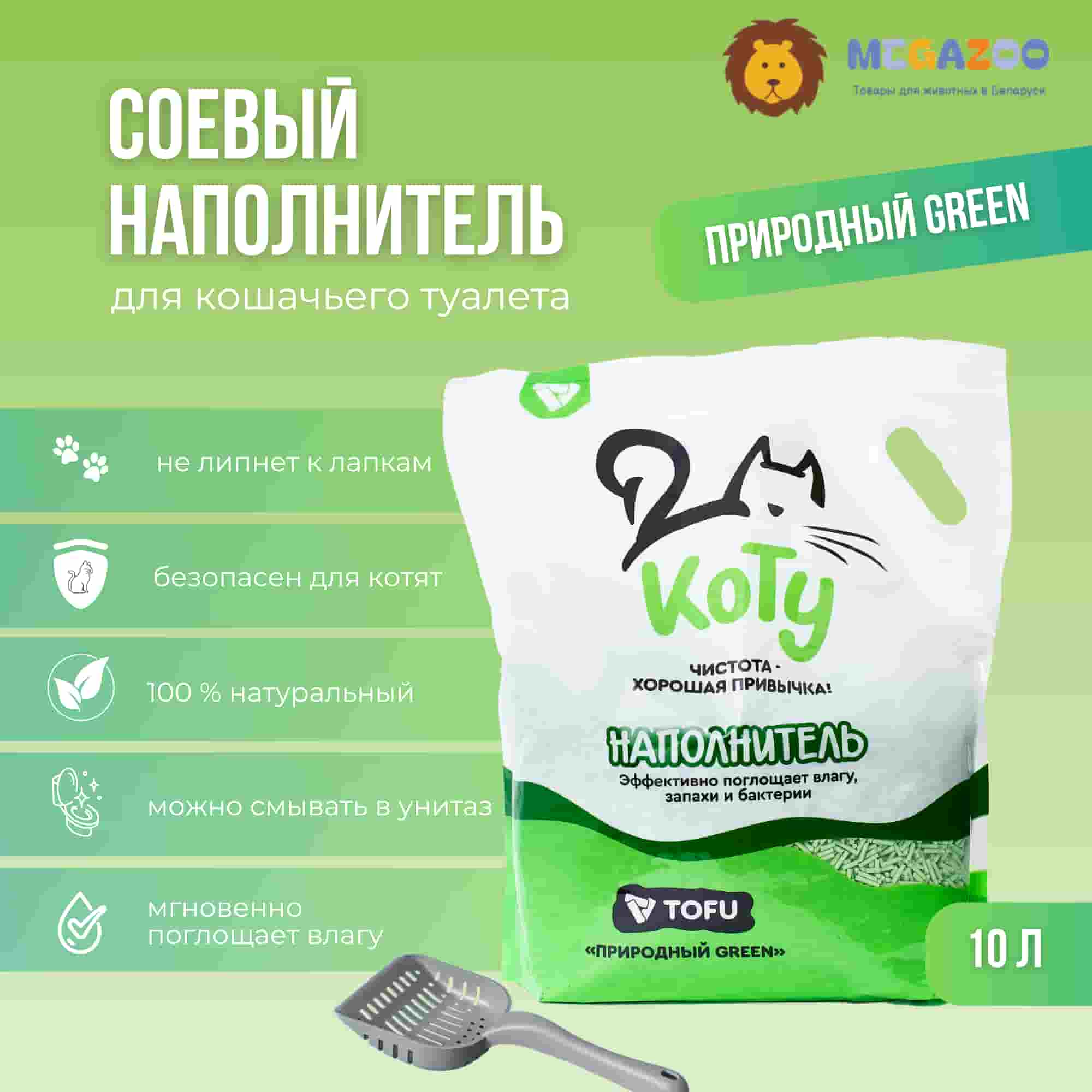 КОТУ наполнитель для туалета кота изготовлен из сои, что делает его 100% растительного происхождения. Зелёные спрессованные гранулы не только выглядят привлекательно, но и эффективно поглощают влагу, запахи и бактерии. Идеальный выбор для владельцев, которые заботятся о здоровье своего питомца и чистоте дома.