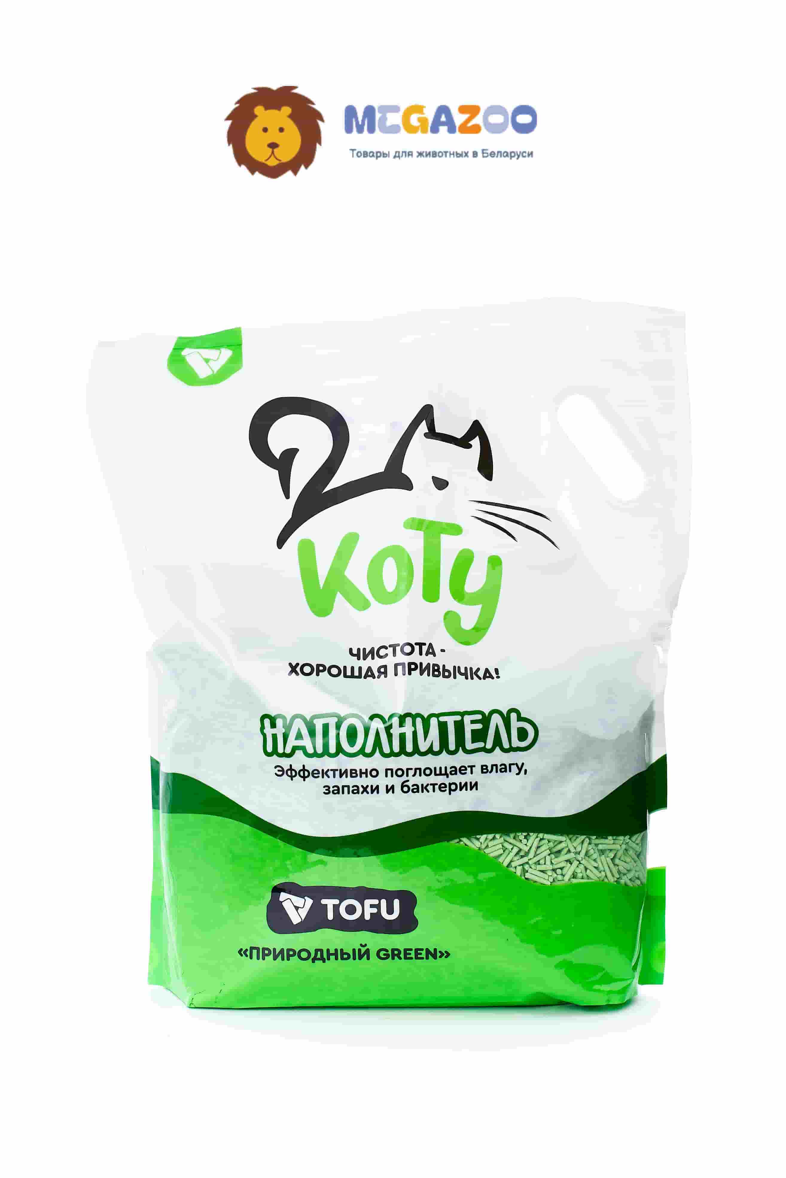 Соевый наполнитель для кошачьего лотка КОТУ TOFU Природный GREEN - это классный наполнитель для кошачьего туалета на растительной основе с зелёными гранулами свежести.