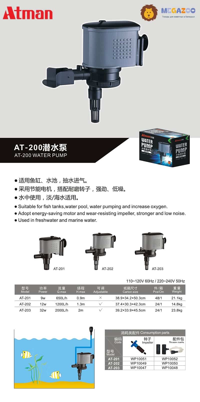Помпа погружная для аквариума Atman AT-201, 650 л/ч,15W