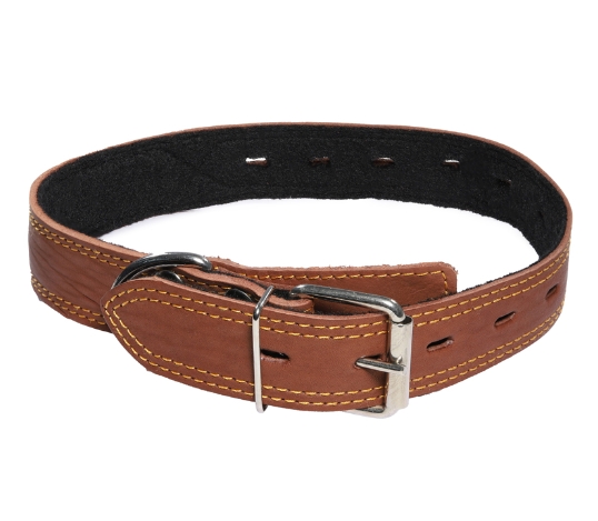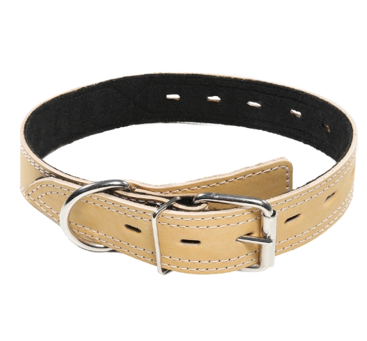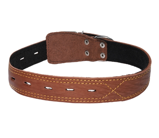 Изделие выполнено из мягкой, но прочной кожи высокого качества с элементами из синтепона и использованием крепкой металлической фурнитуры. Предусмотренные отверстия позволяют удобно подгонять длину под индивидуальные параметры животного, а функциональное металлическое кольцо отлично подойдет для крепления карабина поводка, адресника или других аксессуаров.