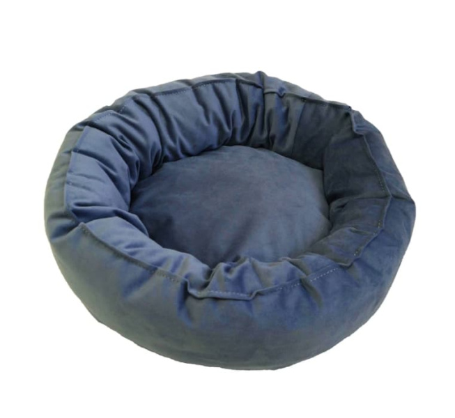 Лежанка круглая со съемным чехлом Тото1 (джинс) - стильная, круглая мягкая лежанка с высокими объемными бортами для небольших пород собак и кошек.