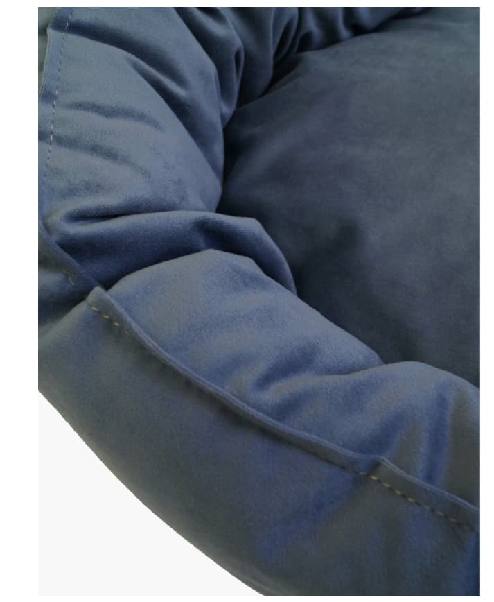 Выполнена из мебельного велюра с эффектом "Антикоготь". У лежанки есть съемный чехол, который легко стирать. В палитре предложено 5 расцветок (джинс, желтый, бежевый, оранжевый, фиолетовый). Данная модель в цвете Джинс.