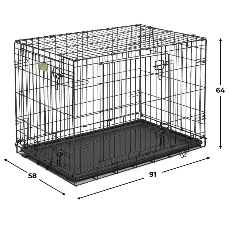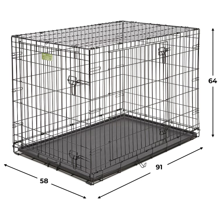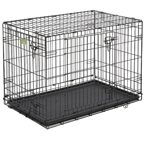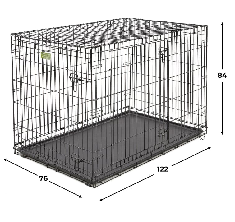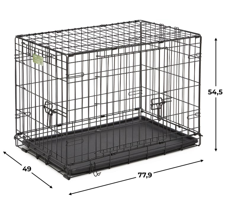 1. Устойчивая, крепкая клетка выполнена из качественного метала, обеспечивающего безопасность животного и хозяина. Двери расположены на смежных боковых сторонах клетки. Удобный, крепкий двойной замок-задвижка позволяет закрыть клетку как снаружи, так и изнутри.