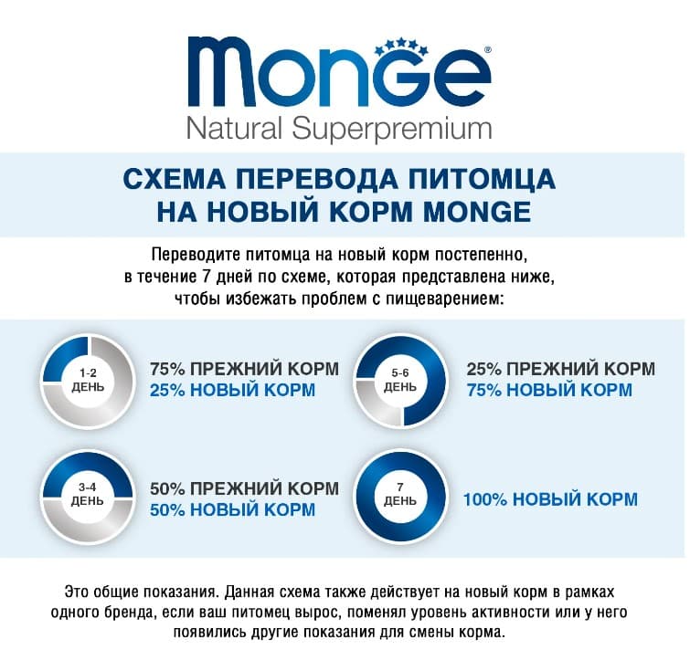 Рекомендуемую суточную порцию можно разделить на 2-3 приема кормления (см. таблицу на упаковке или на сайте). Индивидуальные потребности в питании могут отличаться в зависимости от размера, возраста и уровня активности животного. Данные предписания носят исключительно рекомендательный характер. Для достижения оптимального состояния животного может потребоваться изменения рациона. Переход на новый корм должен происходить в течение недели или более. Всегда оставляйте постоянный доступ к чистой питьевой воде. После вскрытия хранить в холодильнике и использовать в течение 2 дней (подробнее см. на упаковке). Корм для домашних животных не предназначен для употребления в пищу человеку.