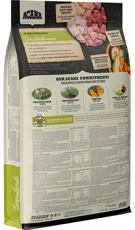 ACANA GRASSLANDS - сухой полнорационный корм для собак и щенков всех пород.