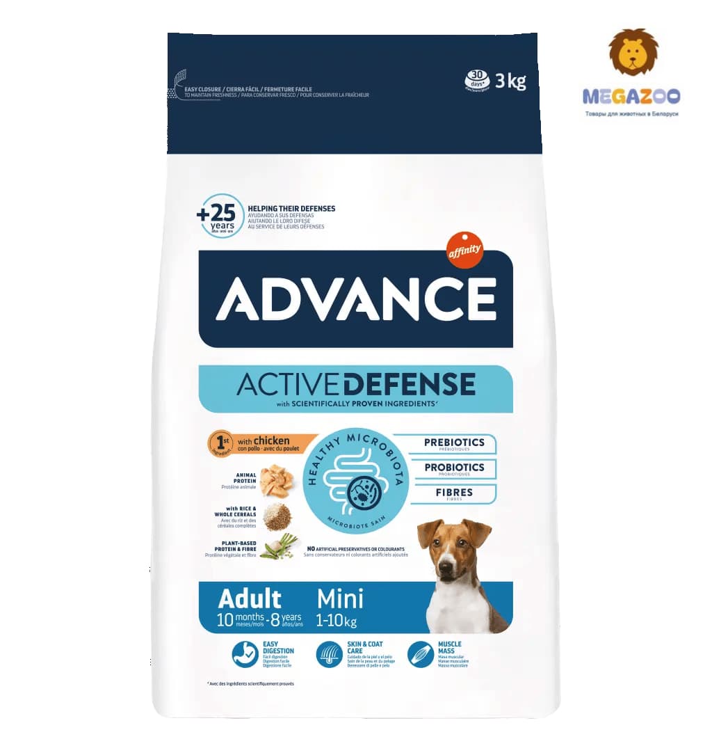 ADVANCE Adult Mini представляет собой продвинутый легкоусвояемый продукт, составленный для удовлетворения специальных потребностей Вашей собаки мелкой породы за счет укрепления ее природных барьеров и защитных сил и помощи ей в поддержании оптимальной мышечной массы, хорошего здоровья зубов и кишечника, здоровой кожи и блестящей шерсти.