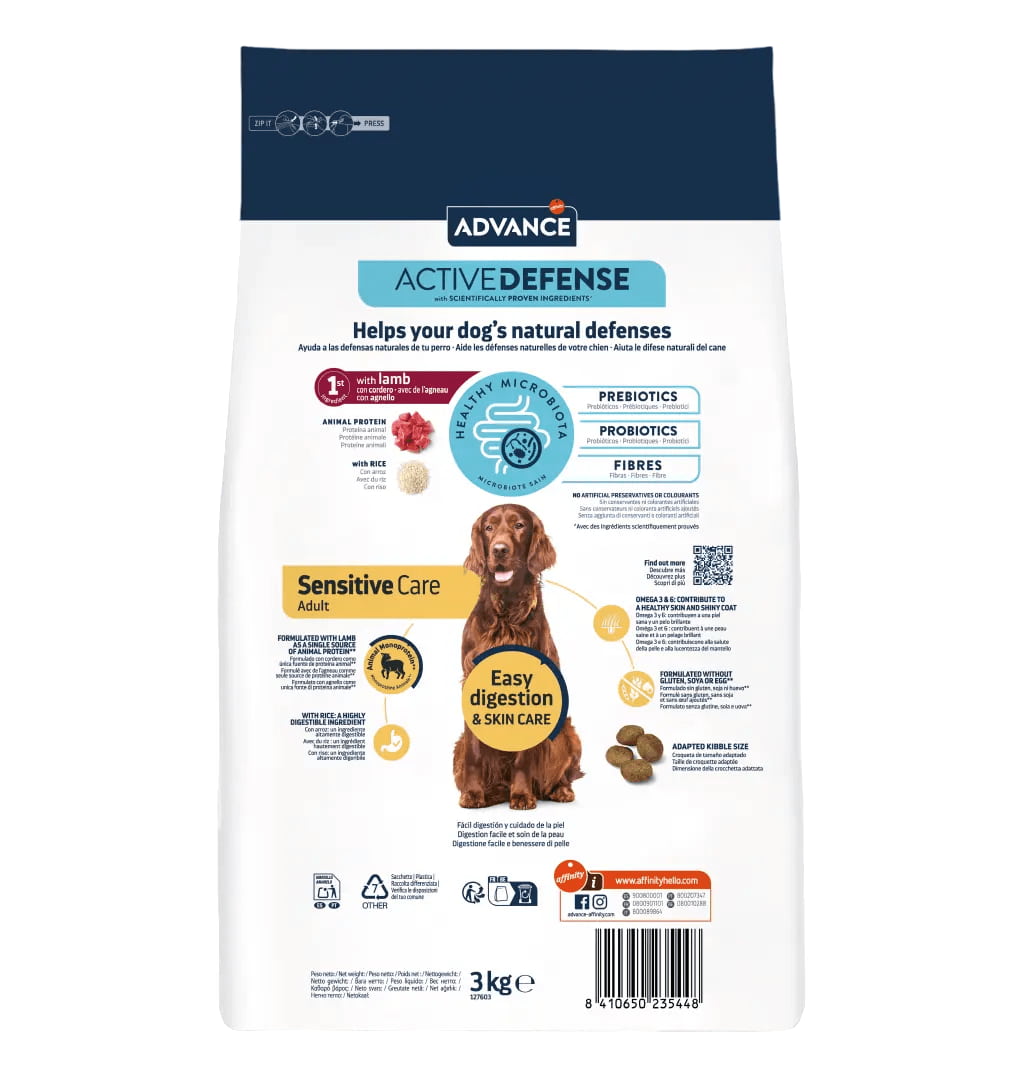 ADVANCE Sensitive Lamb & Rice (более 10 кг) — полноценный и сбалансированный продукт, специально разработанный для собак с чувствительным желудком. Чувствительный желудок может проявляться через проблемы с пищеварением, а иногда и через кожные симптомы.