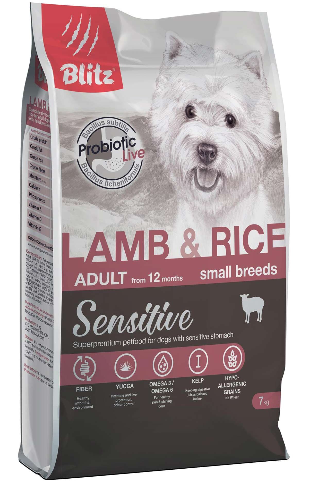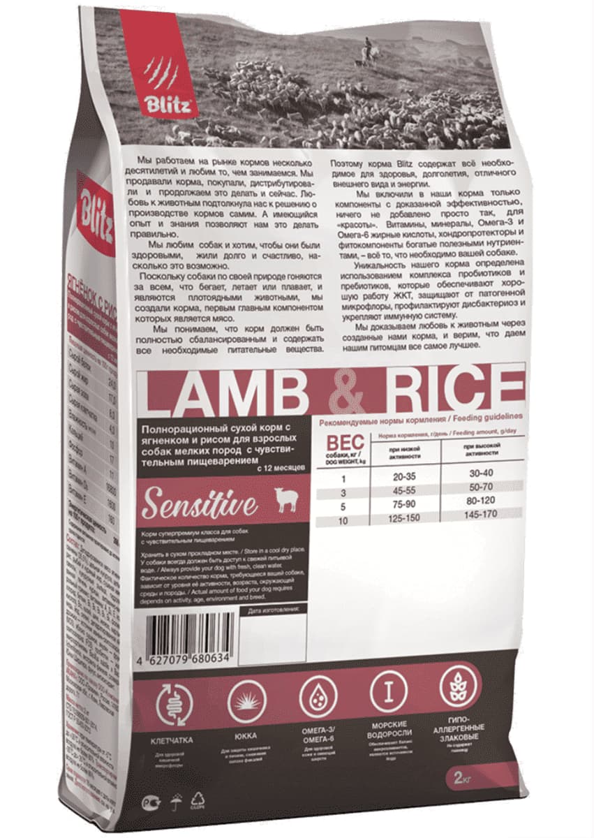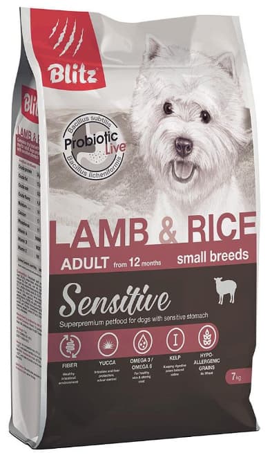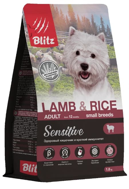 Blitz Sensitive Adult Dog Small Breeds (ягненок, рис) - сухой корм для собак мелких пород.