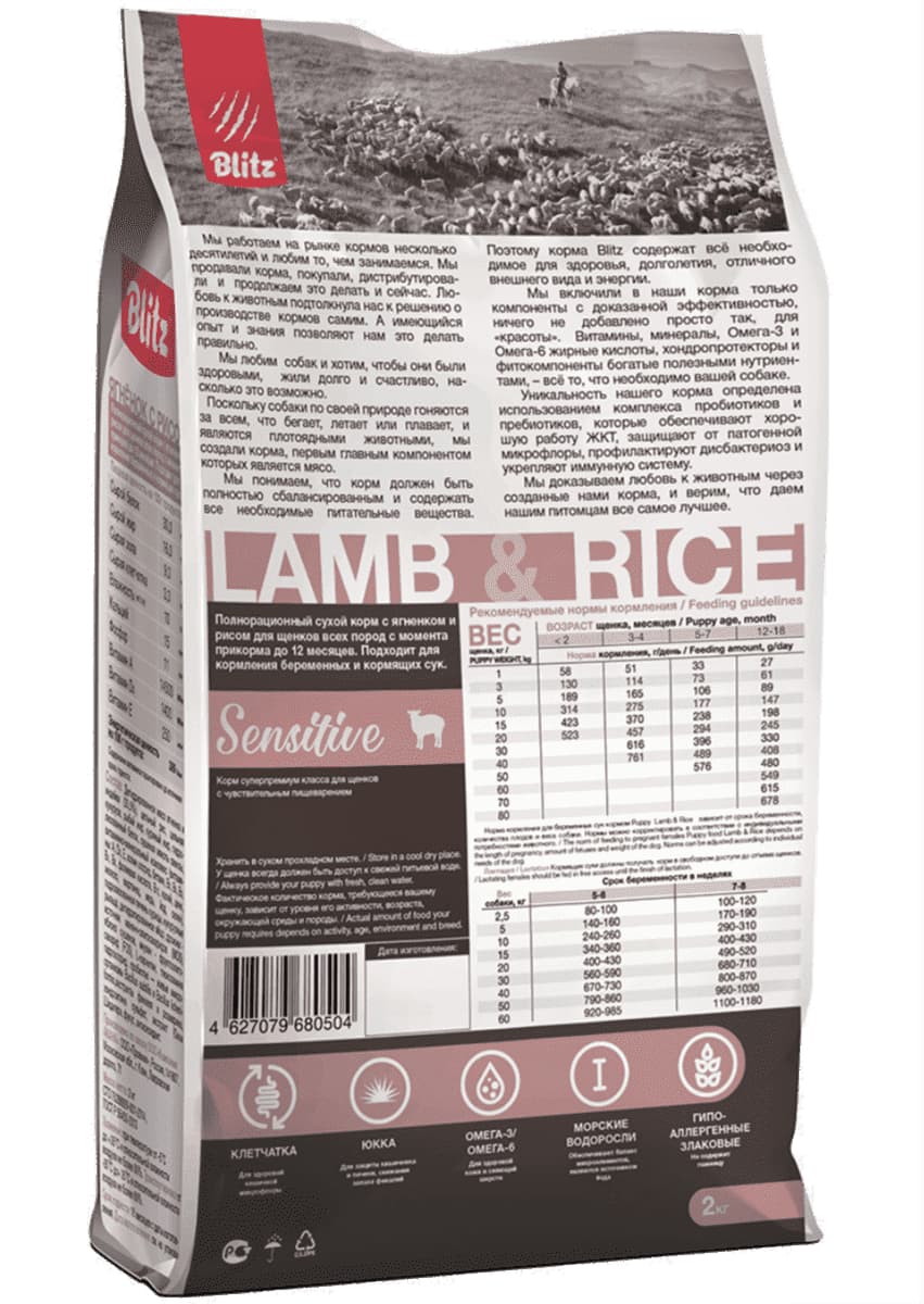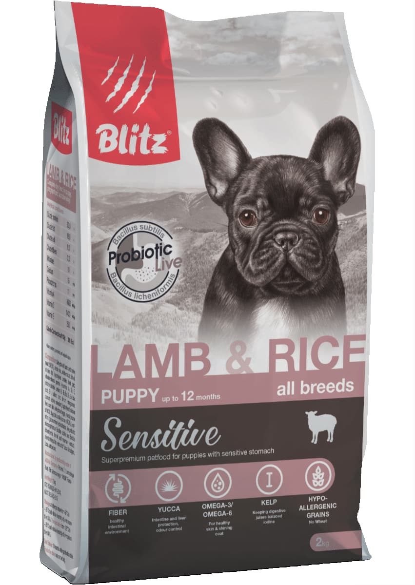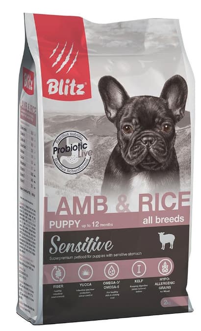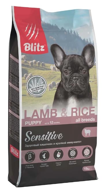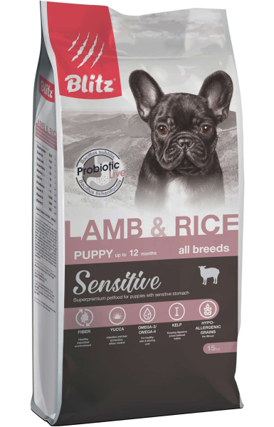 Blitz Sensitive Puppy All Breeds (ягненок, рис) - сухой корм для щенков всех пород.
