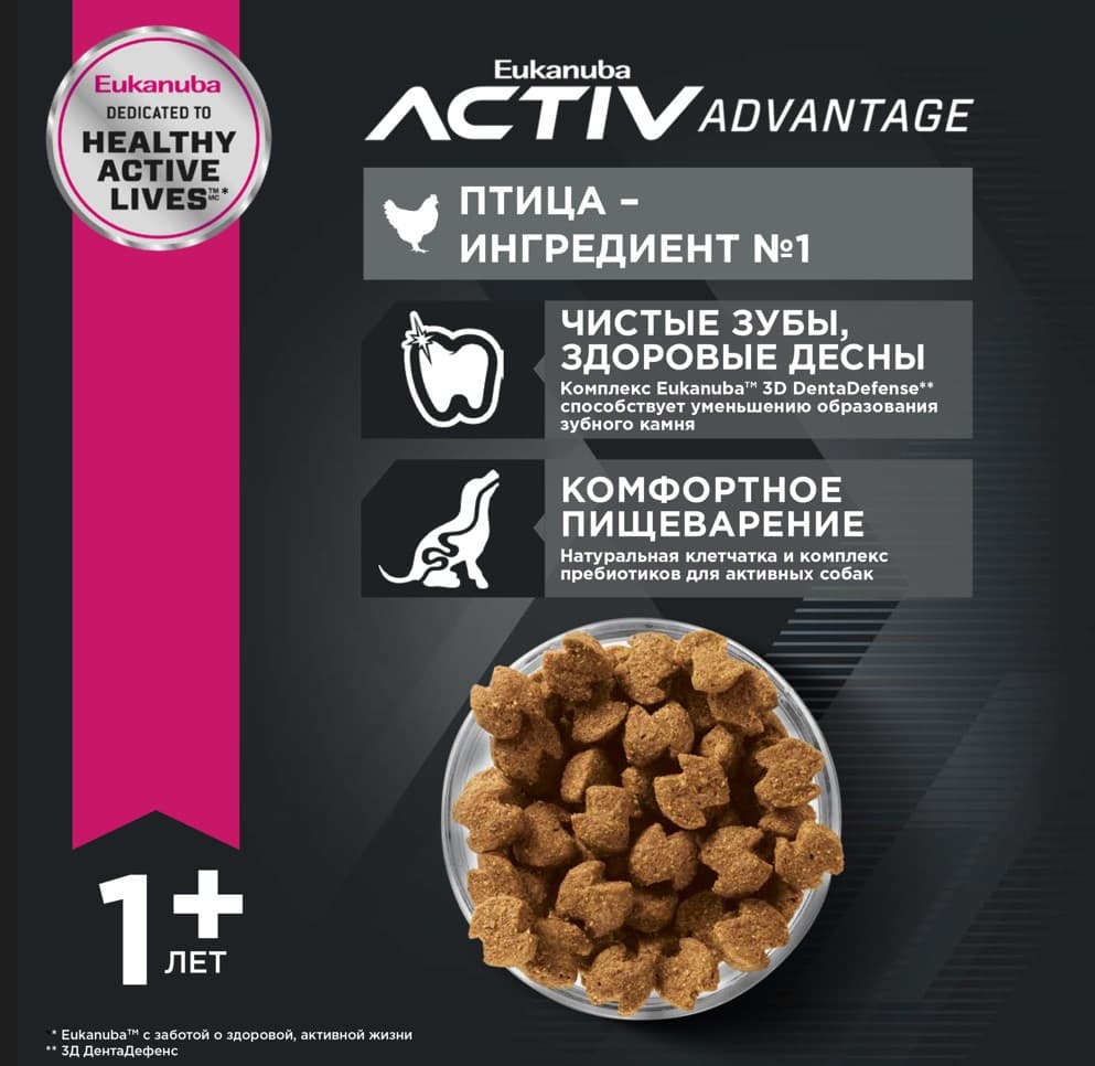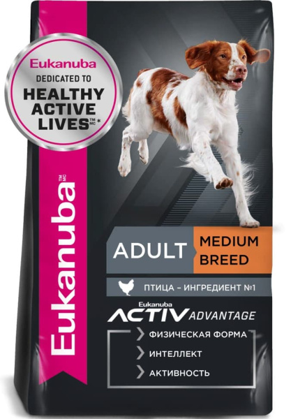 Каждый день собаки полон приключений и веселья: понятно, что у вашей питомца отличный аппетит, так как уже почти пора есть. Eukanuba Adult Medium Breed с птицей не только имеет прекрасный вкус, но и обеспечивает вашего четвероногого друга всеми важными питательными веществами, необходимыми для активного образа жизни.