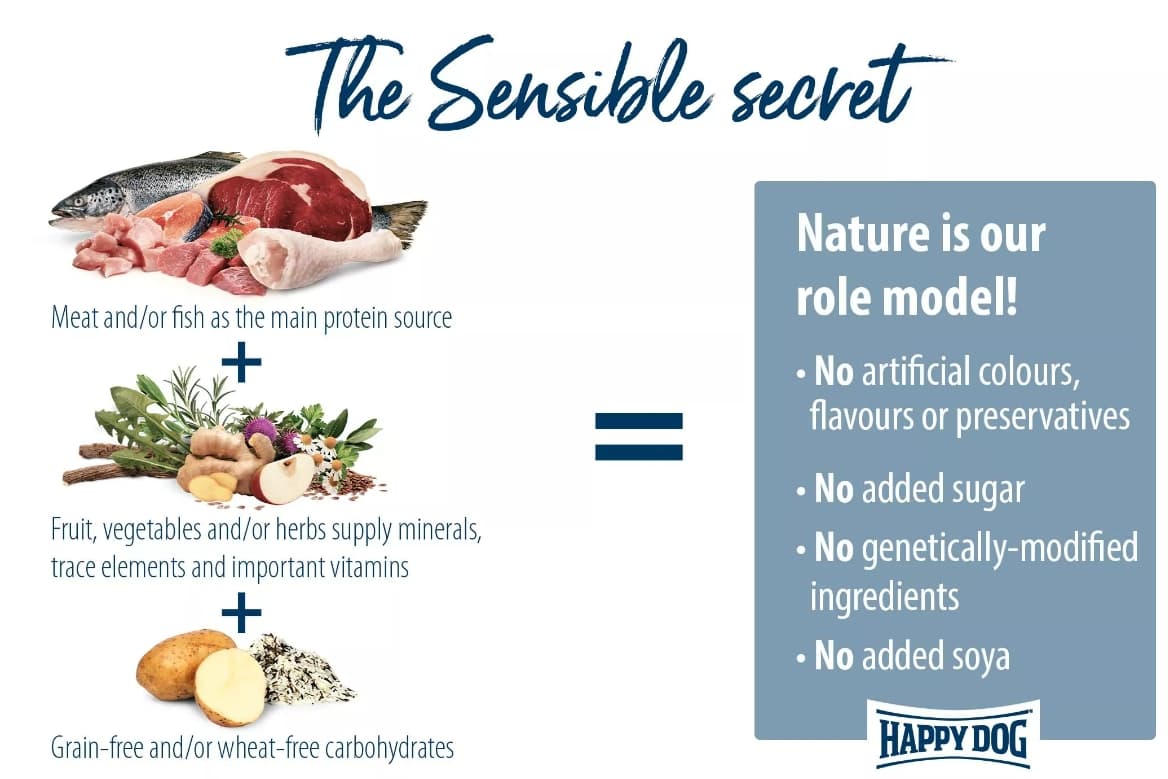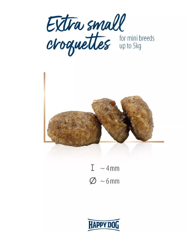 HAPPY DOG Mini XS Sensible Japan - Универсальный корм для взрослых собак мелких и очень мелких пород, курица с форелью и водорослями для очень маленьких собак до 5 кг.