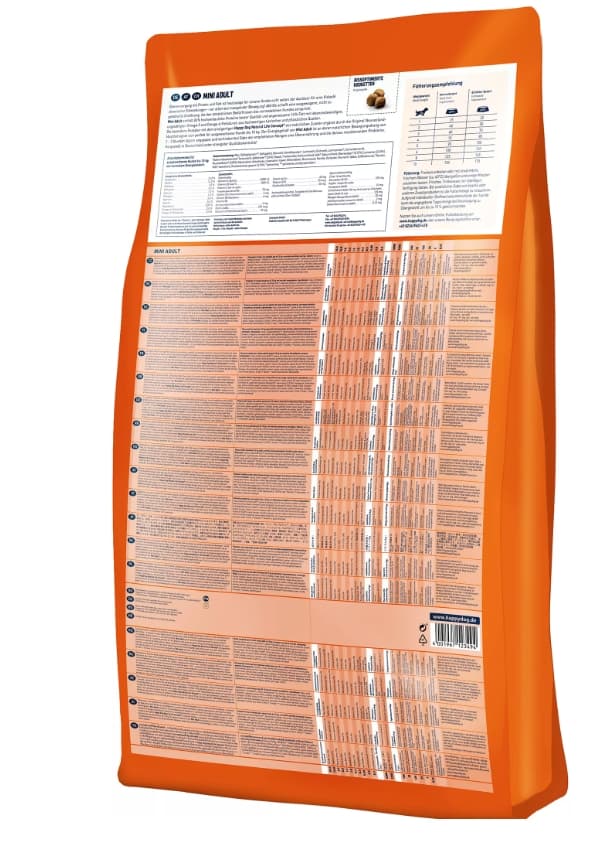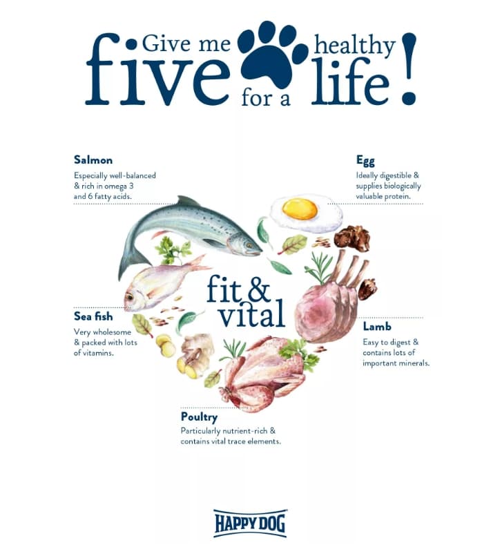 Вы хотите натуральную, сбалансированную пищу с дополнительной порцией здоровья для вашего питомца? Тогда попробуйте Happy Dog Mini Adult. В этом сухом корме есть все, чтобы дать здоровый набор белков, как и в природе, и поэтому он включает в себя пять различных белковых ингредиентов: лосось, морская рыба, яйца, баранина и птица. Лосось содержит незаменимые жирные кислоты Омега-3 и Омега-6, идеально подходящие для кожи и шерсти. Полезная морская рыба снабжает организм широким спектром витаминов, яйца — биологически ценным белком, а баранина — многими жизненно важными минералами. Богатая питательными веществами птица, содержащая необходимые микроэлементы, завершает рецептуру.