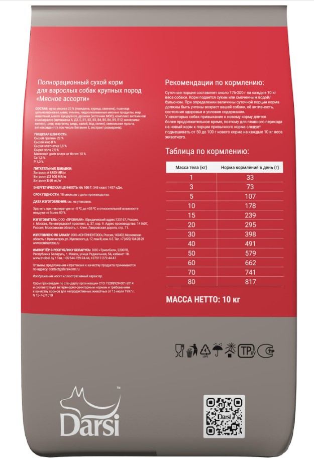 Дарси сухой корм для взрослых собак крупных пород, мясное ассорти