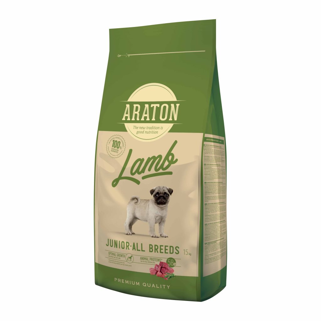 ARATON JUNIOR LAMB & RICE - полноценный сухой корм с ягнёнком и рисом, предназначенный для молодых собак всех пород. Корм приготовлен из высококачественного сырья. В состав корма входят все необходимые питательные вещества и витамины, способные поддержать хорошее состояние здоровья собаки и ее активный рост и развитие.