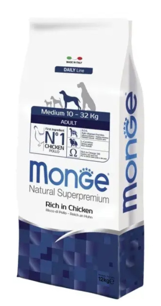 Monge Dog Daily Medium Adult из курицы и риса - сухой полноценный корм для взрослых собак среднего размера (10–32 кг).