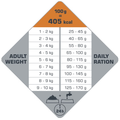 - Адаптированная и очень вкусные крокеты размером 9 мм обеспечивает легкое проглатывание и хорошее пищеварение.