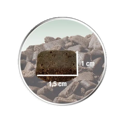 Кусочки мяса готовятся вместе с картофелем без добавления воды методом деликатной паровой обработки при 95 °C. Чистый концентрированный мясной сок составляет 19% от объема корма — больше, чем в большинстве других кормов для собак. Такой тщательно разработанный способ изготовления позволяет сохранить в корме все ценные компоненты и гарантирует вашему любимцу исключительные вкусовые впечатления.