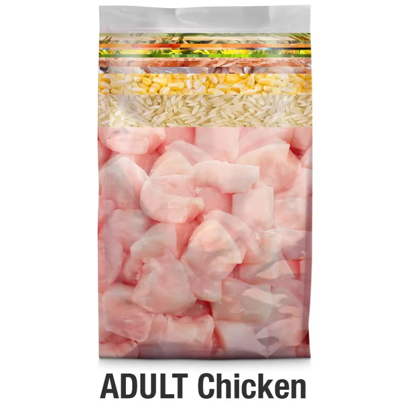 Состав: Cвежее мясо курицы (70 %), дробленый рис, кукуруза (без ГМО), дегидратированная курица, гидролизованный белок птицы, сушеные пивные дрожжи, сушеная яблочная пульпа, лососевое масло, экстракт юкки, ьняное масло холодного отжима, оливковое масло холодного отжима, экстракт зеленогубого моллюска, сушеная морковь, сушеные помидоры, сушеные бархатцы африканские, сушеный одуванчик, сушеные брокколи, сушеный зеленый чай, сушеная ромашка, сушеное орегано, сушеные семена расторопши, сушеные семена клюквы, сушеная морская капуста, хлорид калия.