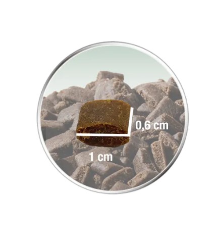 Состав: Cвежее мясо курицы (73 %), дробленый рис, дегидратированная курица, сушеная рыба, гидролизованный белок птицы, сушеная яблочная пульпа, лососевое масло, сушеные пивные дрожжи, льняное масло холодного отжима, оливковое масло холодного отжима, хлорид калия.