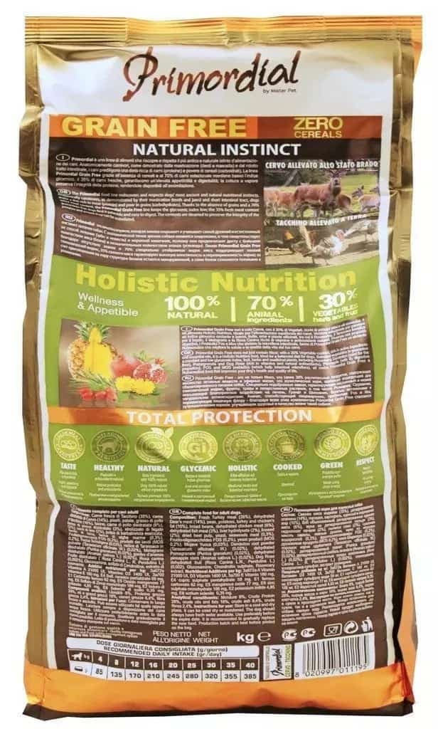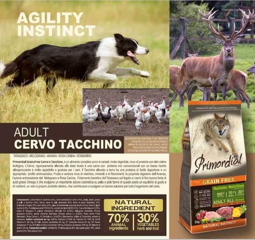 Primordial Dog Adult Deer&Turkey - полноценный корм супер-премиум класса, предназначенный для взрослых собак . Цель состоит в том, чтобы естественно поддержать здоровую собаку.